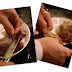 Nosta broileri leikkuulaudalle. Poista nahka ja irrota lihat. Lihojen irrottaminen onnistuu helpoiten sormin, mikäli broileri on hieman jäähtynyt. Tarvittaessa pieni lihapaloja tai nyhdä niitä pienemmiksi kahden haarukan avulla.